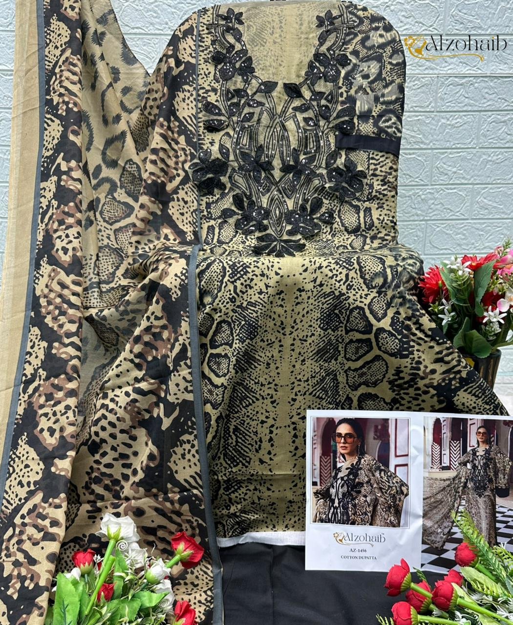 ALZOHAIB Pakistani Concept Cotton Suit Set with Heavy Patch Work & Chiffon Dupatta – New Launch (Free Shipping)