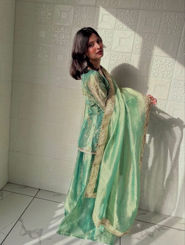 Step into a royal festive look with this designer gown lehenga set, crafted in heavy Chinon silk and enhanced with elegant embroidery work. Long flowy gown, comfortable lehenga, and a beautifully bordered dupatta make this outfit perfect for weddings, receptions, and festive celebrations. 💃✨