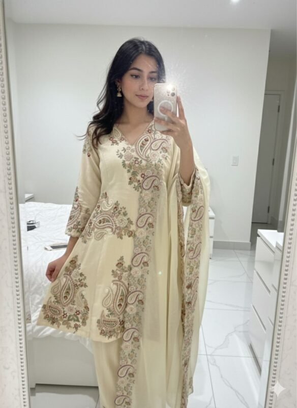 Be the first to review “Heavy Chinon Silk Gown Lehenga Set with Embroidered Dupatta – Ready to Wear”