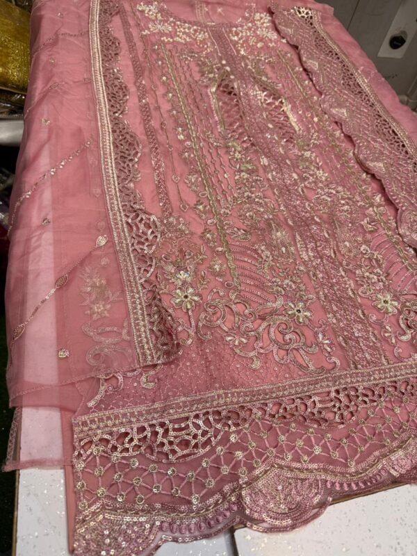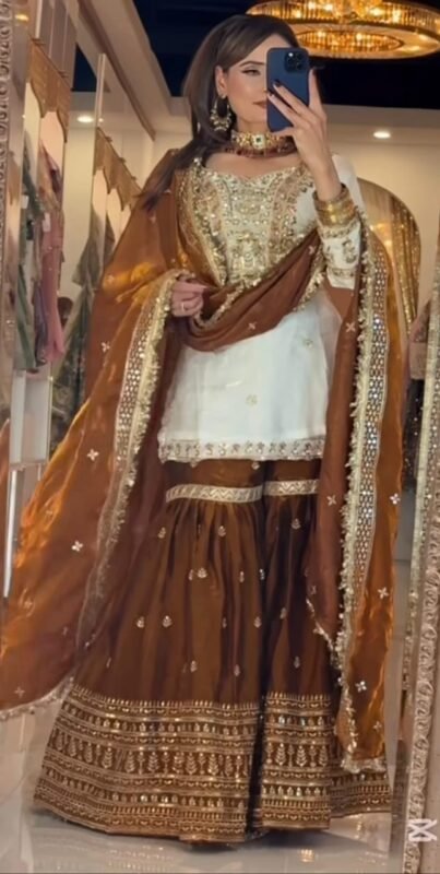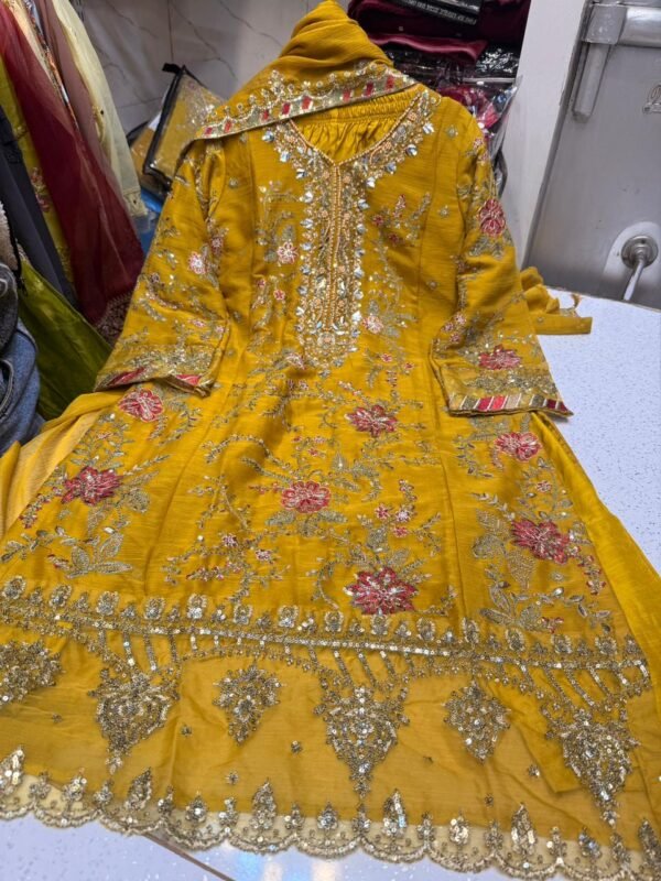 Heavy Fandy Silk Embroidered Top with Farshi Salwar & Georgette Dupatta – Ready to Wear (Free Shipping)