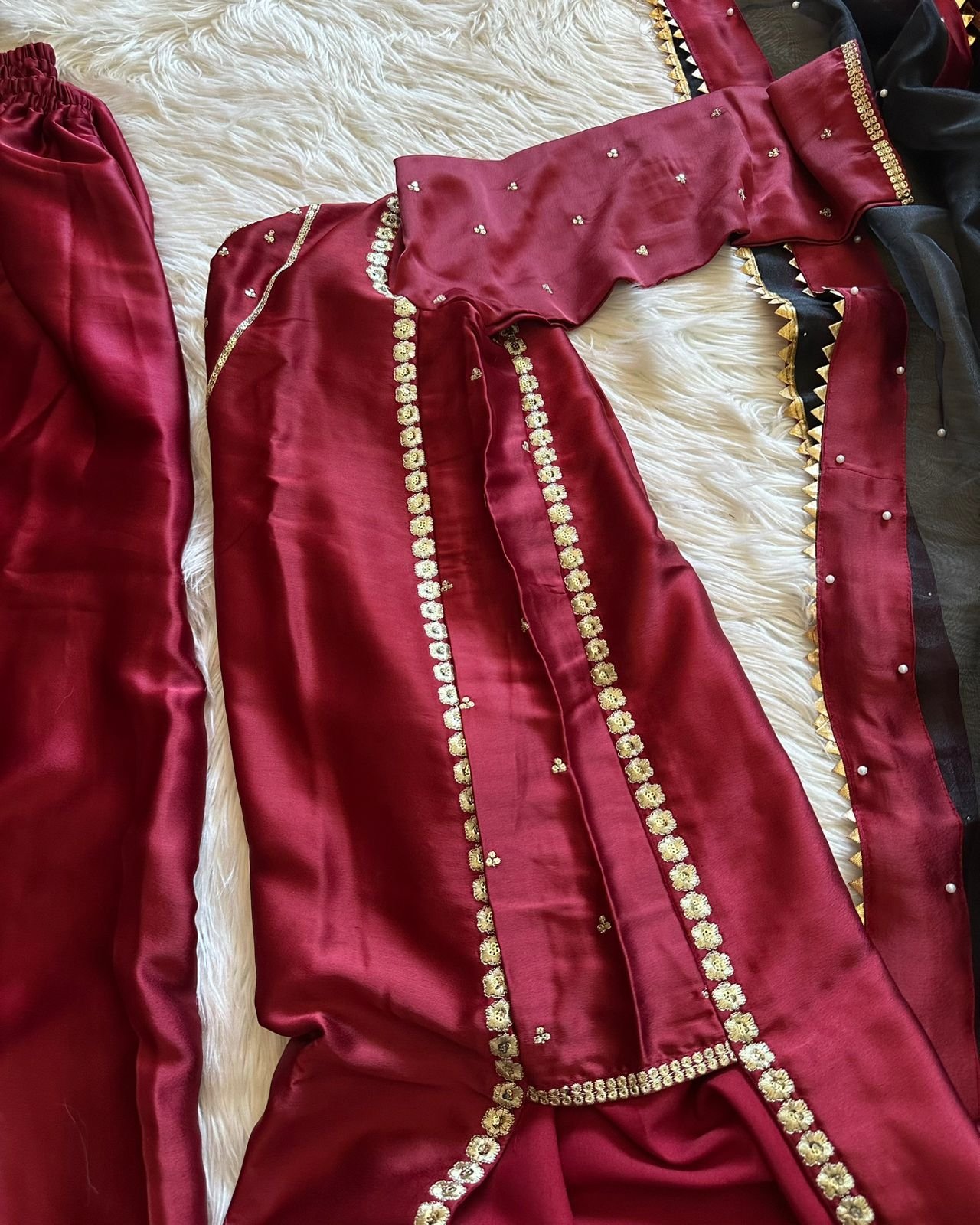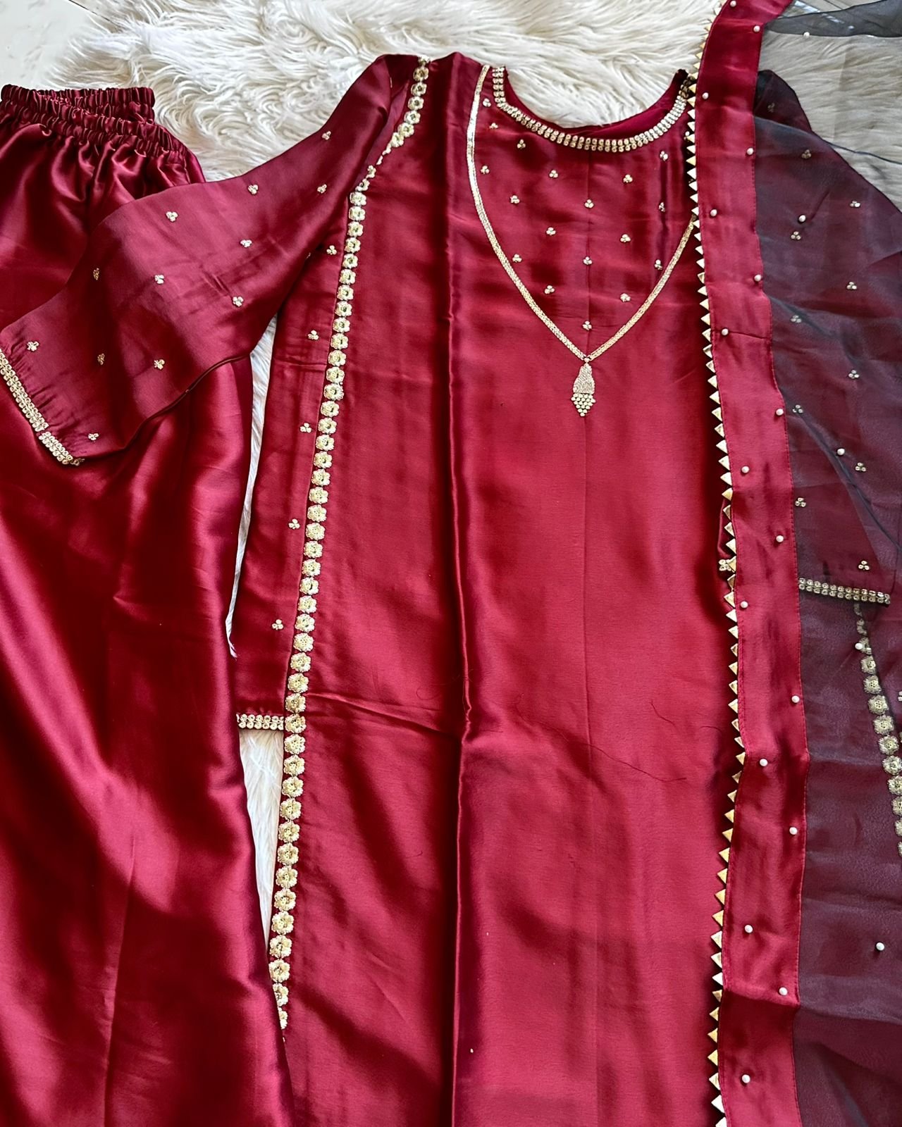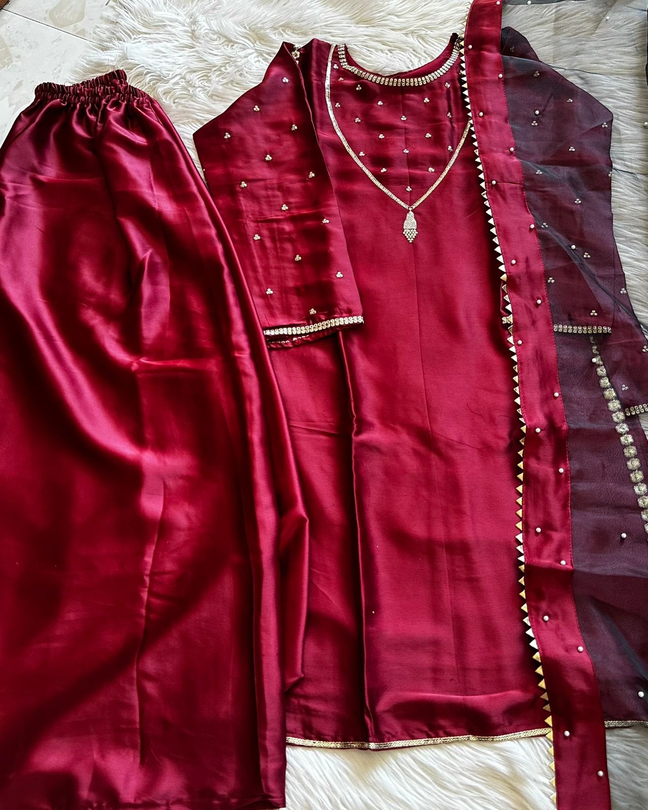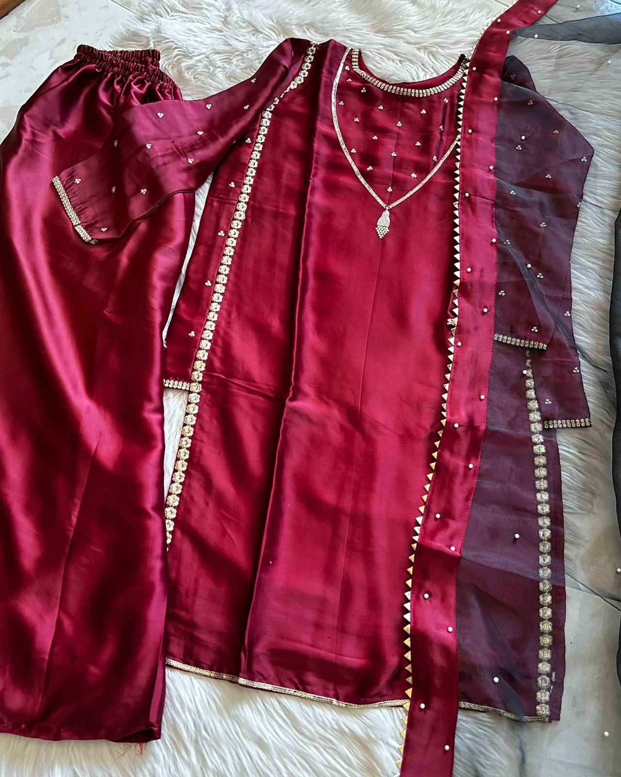 Presenting a classy Japan Satin Suit Set, crafted to give you a rich festive look with an ultra-smooth, comfortable feel. Luxurious satin fabric paired with soft micro cotton lining makes it perfect for long hours of wear—stylish yet effortless 🌸